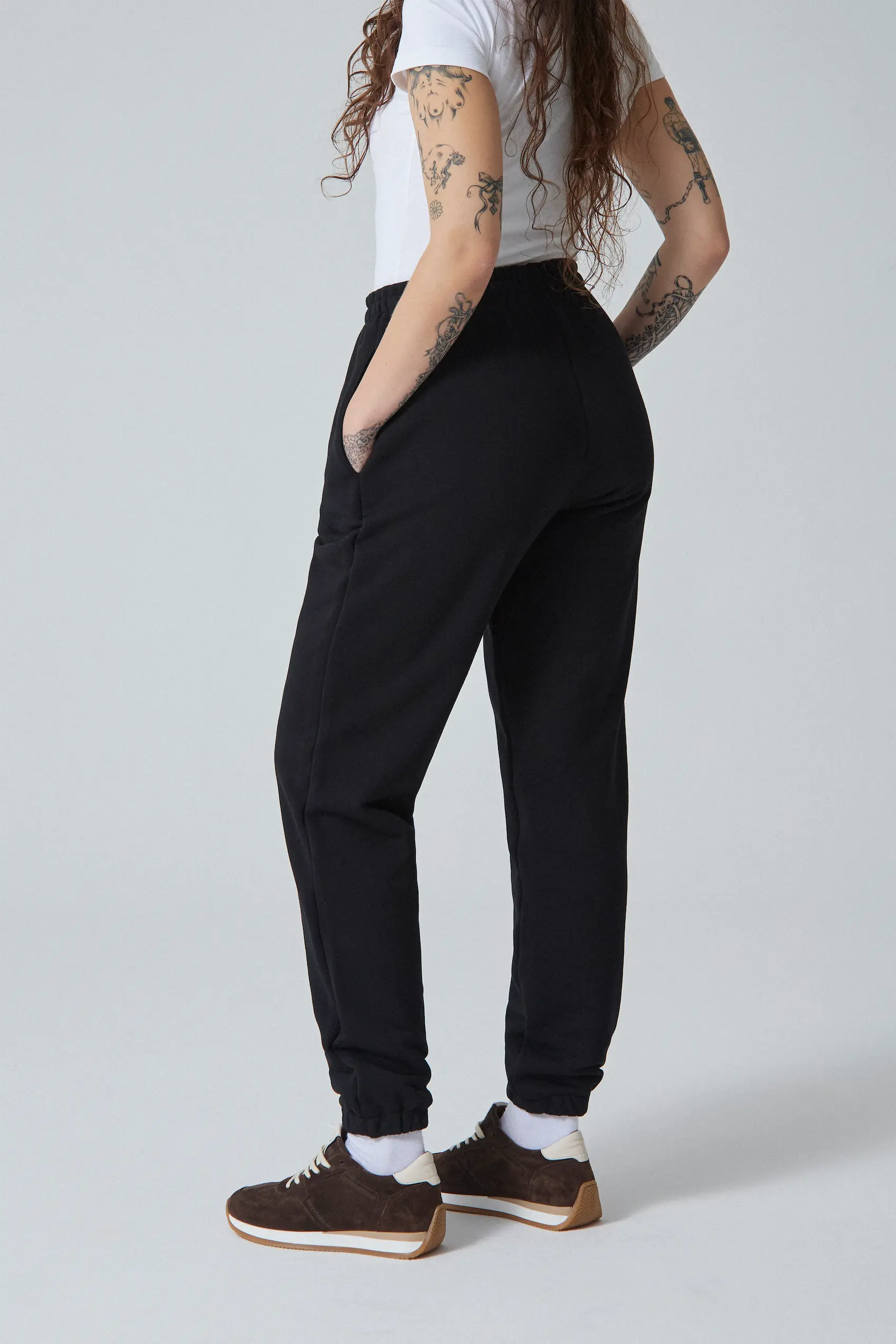 Spodnie dresowe jogger DASH black to propozycja dla kobiet, które cenią komfort w minimalistycznym wydaniu. Krój typu jogger – luźniejszy w udach i zwężany ku dołowi – podkreśla sylwetkę i pasuje do różnych typów figury. Klasyczna czerń sprawia, że spodnie są ponadczasowe i uniwersalne.